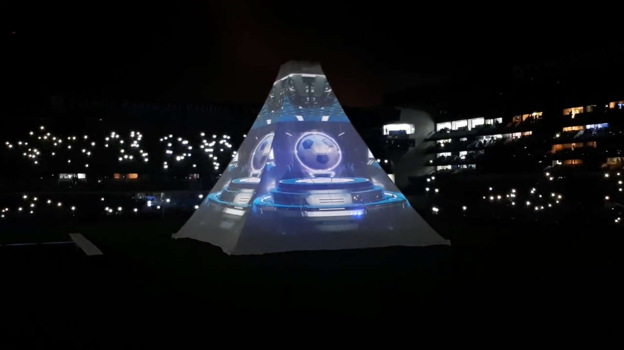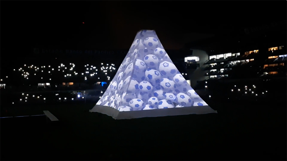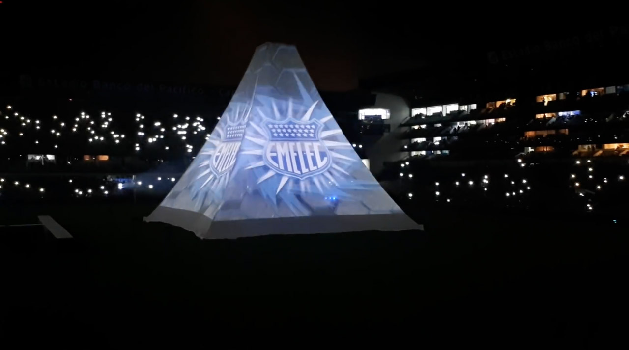Para conmemorar sus 90 años, el EMELEC Club Sport de Ecuador quiso celebrar en grande, con un espectáculo que aplaudía tanto su historia como su fanaticada. El equipo de fútbol presentó su nueva imagen, y múcura estuvo ahí para ayudarlos a llevar la emoción de esa “explosión azul” a todo los “emelexistas” en el estadio George Capwell, que se vistió de luz, proyectando sobre una pirámide de 20 metros de alto nuestros contenidos audiovisuales, realizados en conjunto con Camilo Mejía (VJ Bastard).